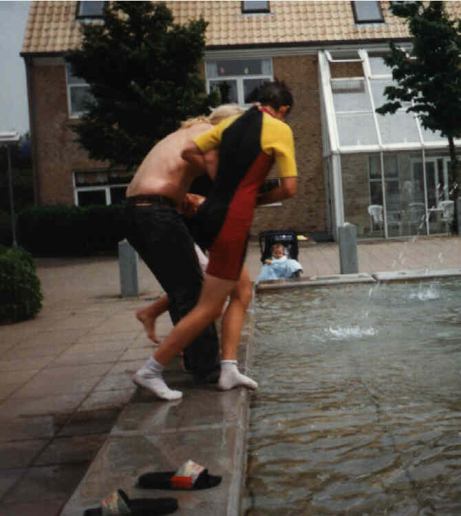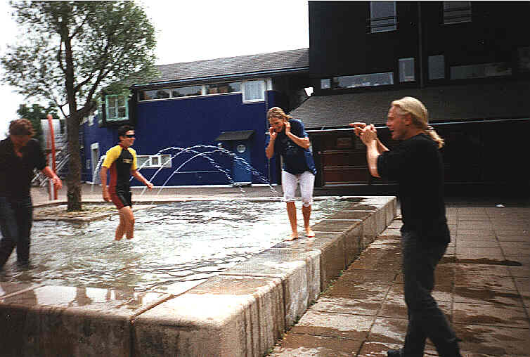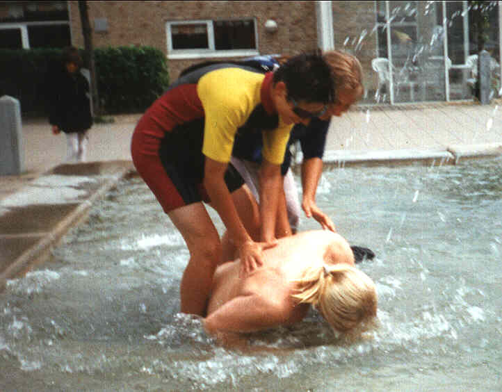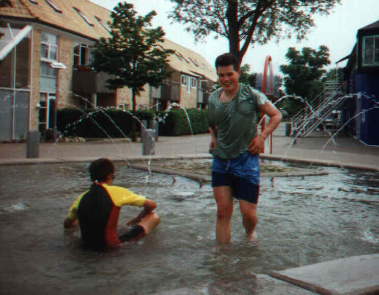 Efter jeg var kylet i, begyndte de at fange hinanden og smide hinanden i springvandet. Kun to undslap, Magnus og Christof, fordi de havde langt hjem, og ikke skiftetøj med. Heldigvis (?) bor jeg kun 3 min. på cykel fra skolen.